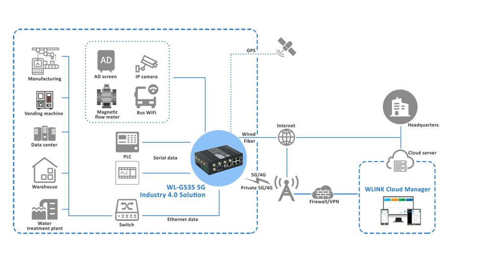 WL-G535 operates in both 5G SA and NSA modes, full backward compatibility with 4G LTE and 3G networks. It achieves a theoretical peak throughput of 3.4Gbps, enabling real-time data transmission for latency-sensitive industrial operations.